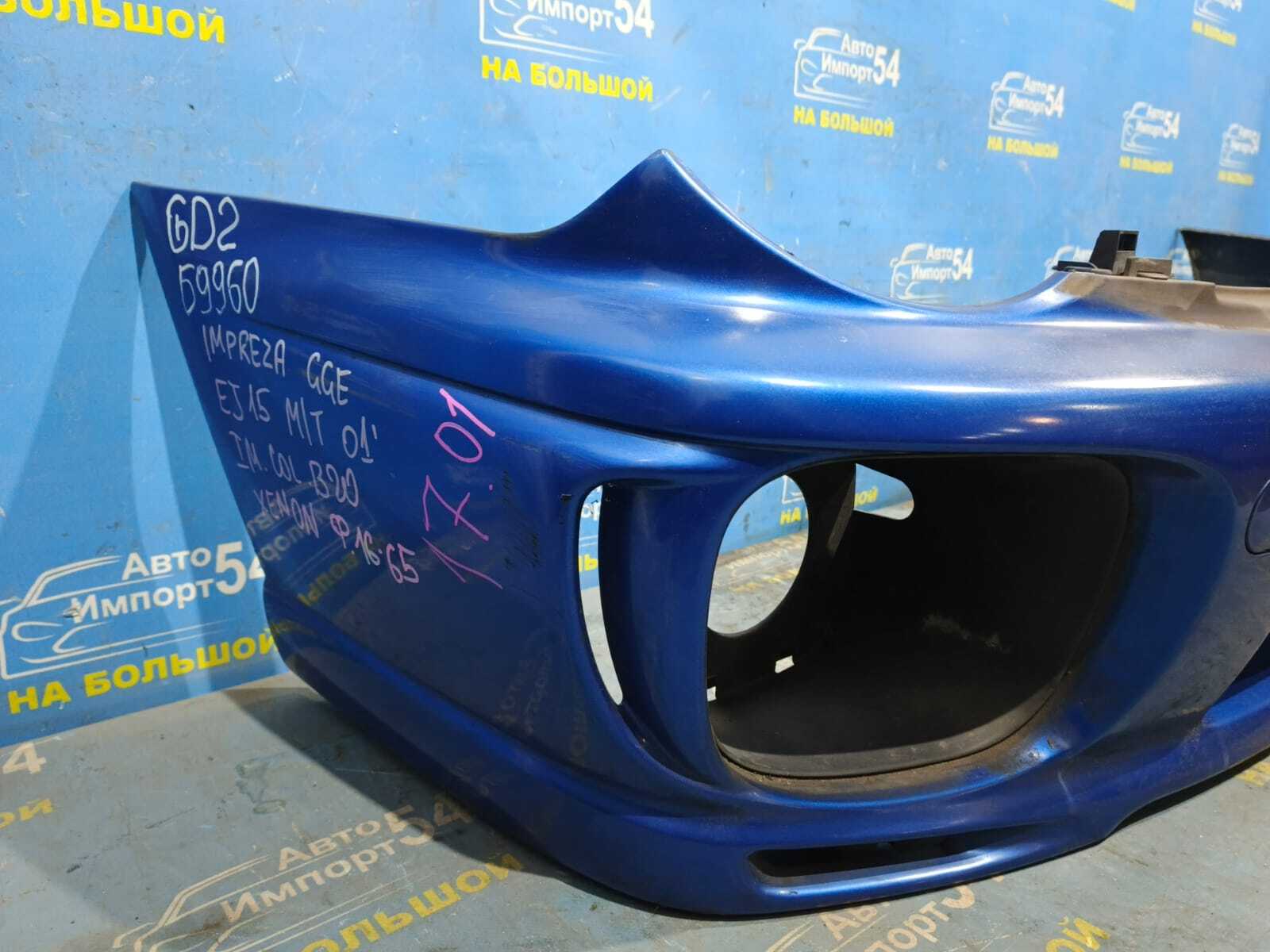 57703-FE010, Контрактный, без пробега по РФ, синий B20, первая модель, цена за бампер с заглушками, без верхней решетки, она продается отдельно, царапины (код Б9960)