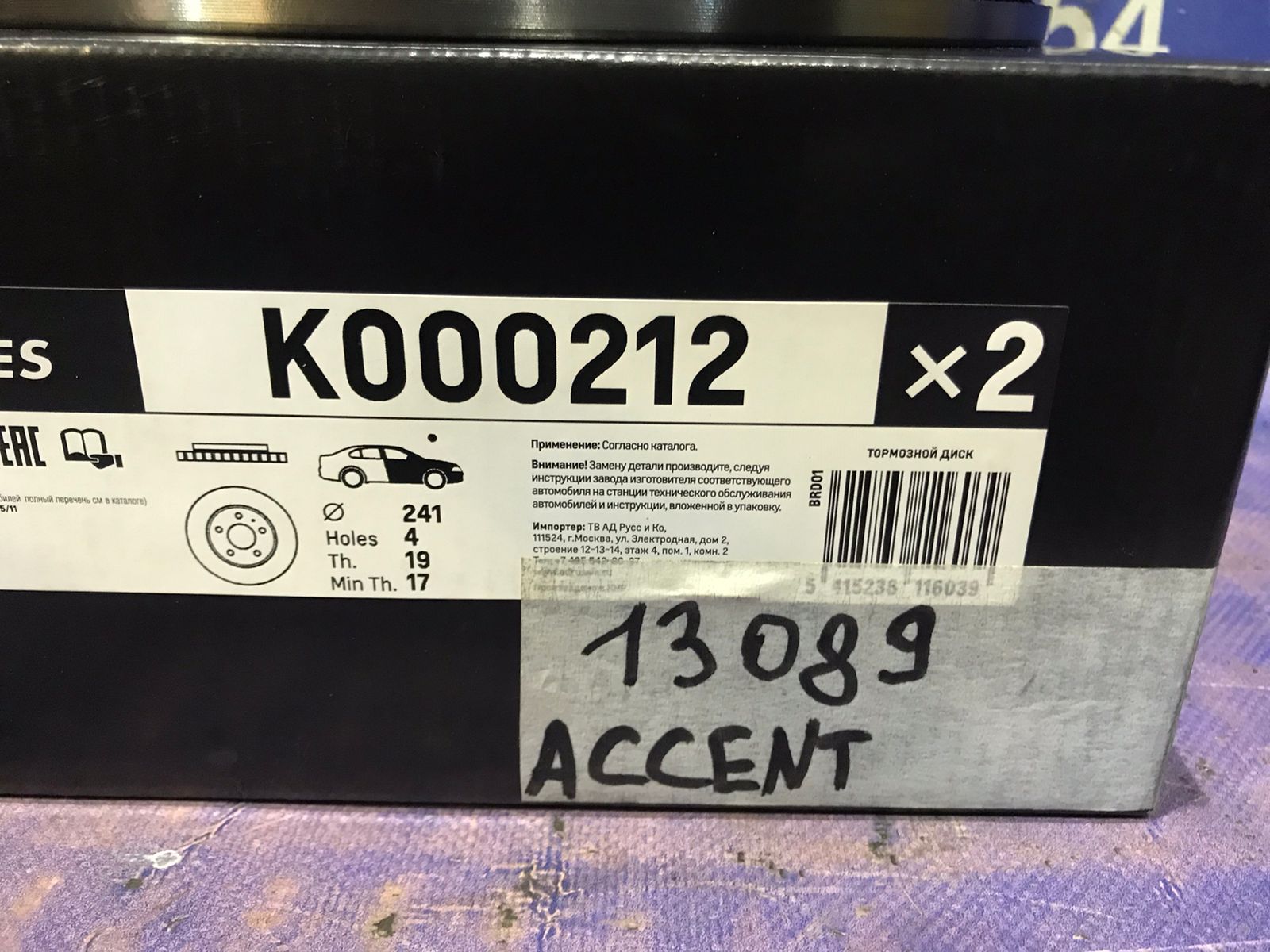 Диск тормозной передний HYUNDAI ACCENT 1999-2006